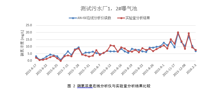 通過AN-ISE分析儀的在線測量值與實(shí)驗(yàn)室測定方法的對比,可以判斷AN-ISE分析儀的在線測量是否真實(shí)可靠,再通過對系統(tǒng)能耗的評估,來判斷其在污水處理中,節(jié)能降耗所發(fā)揮的作用。