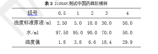 a)利用濁度儀制作的工作曲線來標定藥典澄清度標液,標定結(jié)果如下: