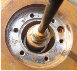 客戶處一直抱怨SONATAX sc漏水的問(wèn)題,其實(shí)探頭本身是IP68的防護(hù)等級(jí),綜合隊(duì)客戶現(xiàn)場(chǎng)的考察,發(fā)現(xiàn)漏水點(diǎn)易發(fā)生于安裝支架與探頭接口處(圖5)。一些客戶在該處并沒(méi)有安裝O型密封圈墊。如果客戶不方便安裝O型密封圈墊的話,可以建議在該處打上密封膠,來(lái)防止水分侵入。