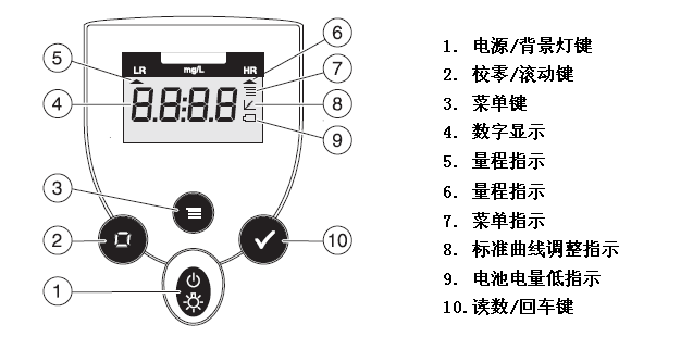 本儀器為便攜式單參數(shù)儀器,用于現(xiàn)場(chǎng)水樣的快速測(cè)量。